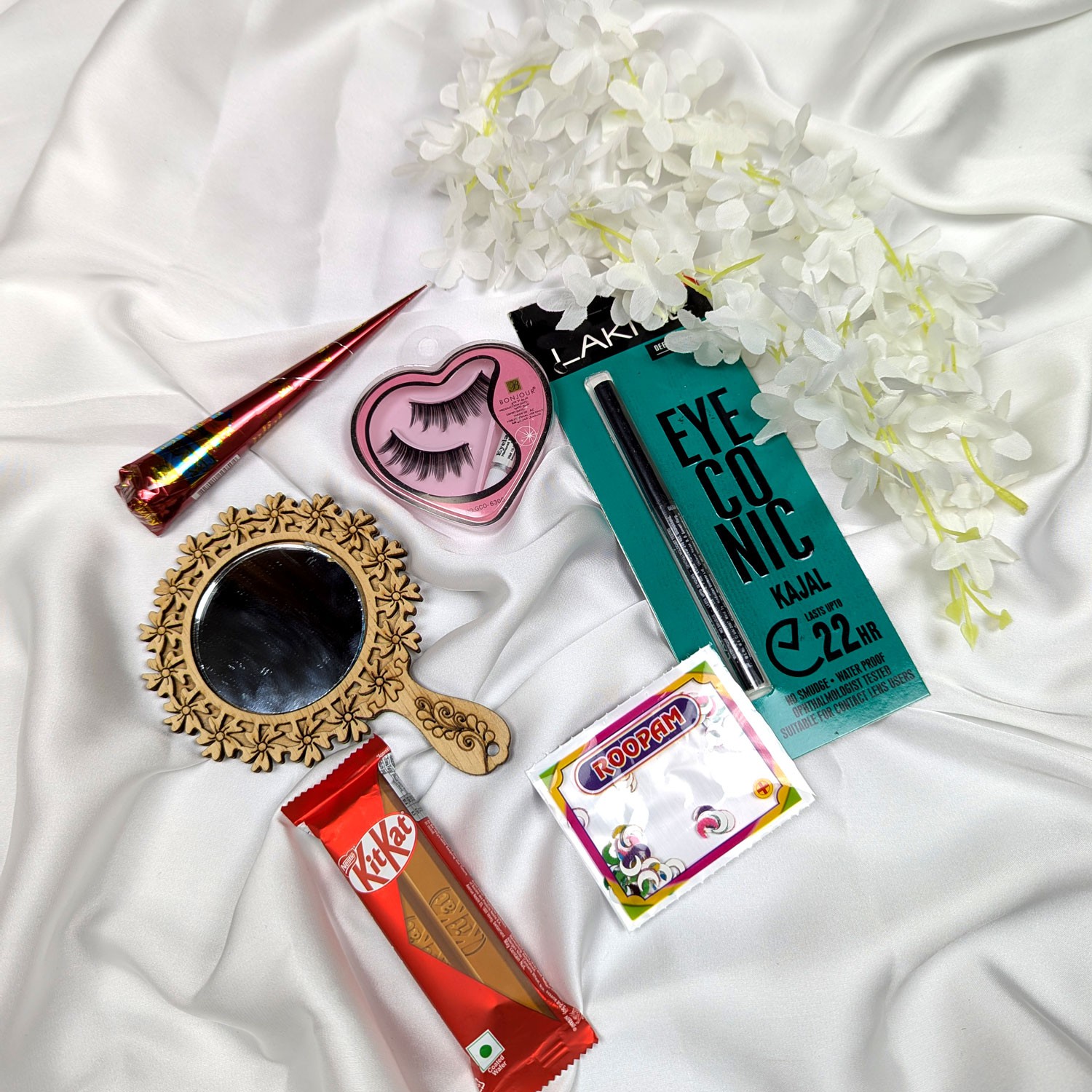 💍 ফিঙ্গার রিং উইথ বক্স , উডেন আয়না, কাজল ও মেহেদি